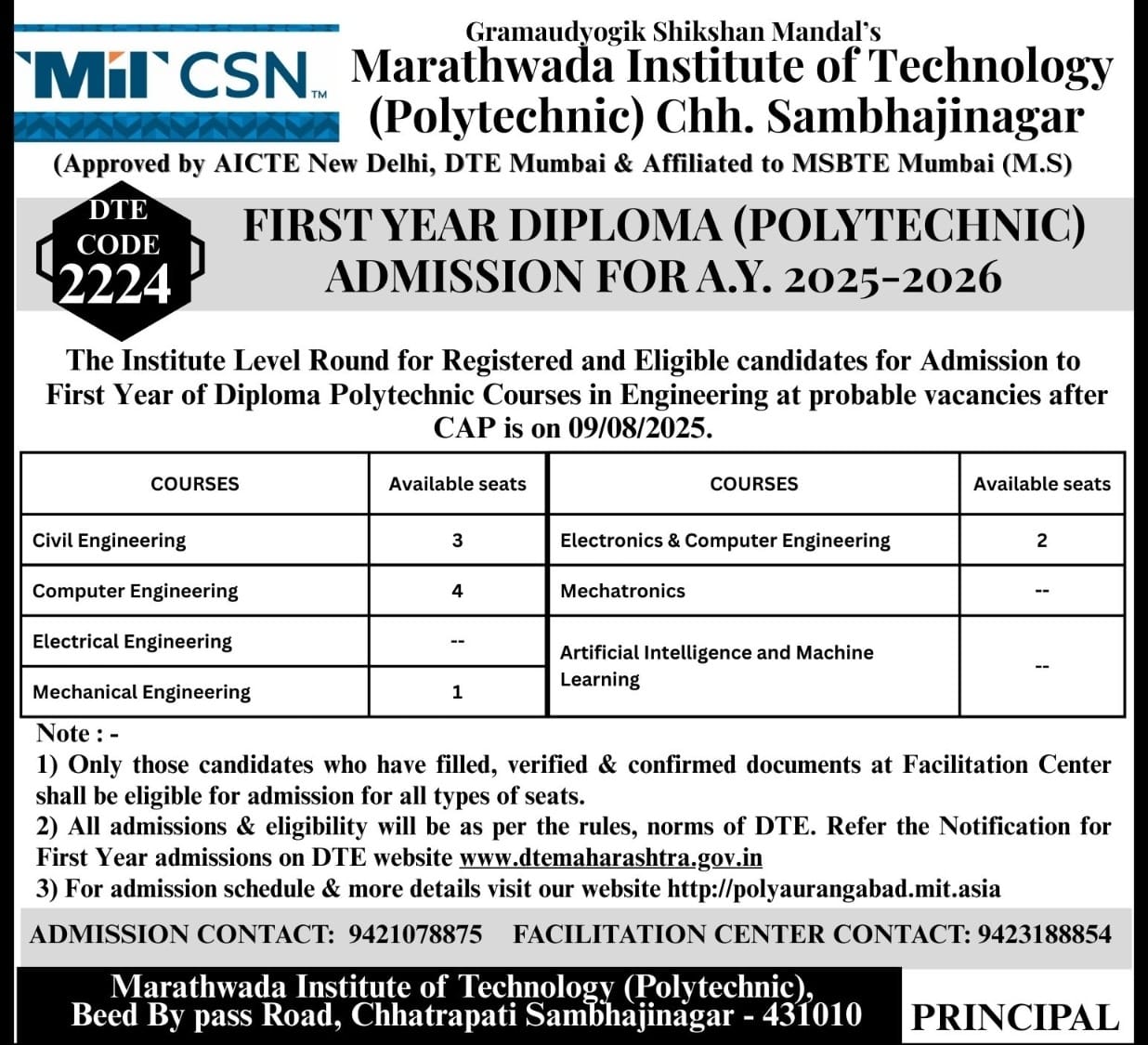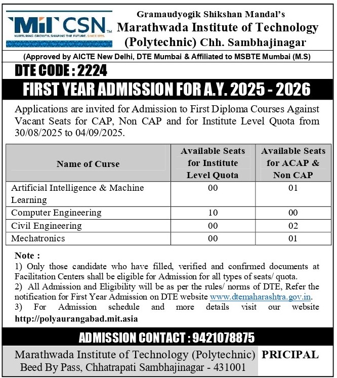 - Principal, MIT Polytechnic, Chhatrapati Sambhajinagar